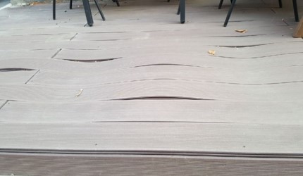 합성목재의 경우 제품도 다양하지만 가격적인 부분도 크기 도하지만 대부분 합성목재에서 다른 제품으로 바꾸려는 이유가 높은 자재 원가와 목분과 합성수지(플라스틱)를 압축 가공하여 만들기 때문에 자체의 열전도율이 높아 무더운 여름철이나 온도가 높을 경우 길이 방향의 수축 팽창으로 부딪쳐 깨지는 현상과 목분의 영향으로 뒤틀어짐과 변형 터짐 현사아과 같은 하자가 많이 발생합니다. 이러한 하자 발생 사례가 늘어나면서 건축주분들이 자재를 선택할 때 고민을 해봐야 합니다.