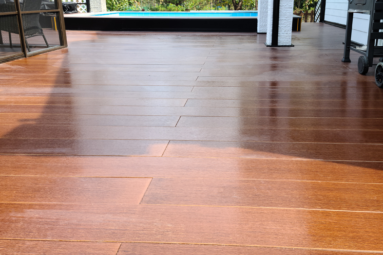 목재 데크(방부목)보다 좀 더 내구성을 생각한다면 천연목재가 있을 수 있습니다. 천연목재는 흔히들 이뻬, 가라파, 게루투, 방킬라이, 모말라 등 천연 원목을 가공해 만든 제품으로 생상 되는 지역에 따라 남양재와 하드우드 등으로 불립니다. 가성비를 생각한다면 목재 데크를 선택하겠지만 그렇지 않다면 천연 원목이 좋을듯합니다. 천연 원목은 목재 데크보다 미려함과 보행 감이 우수하며, 밀도가 높기 때문에 내구성이 우수합니다. 다만 자재값이 비싸고, 목재 데크처럼 주기적인 유지관리가 필요하기 때문에 선택하는 데 있어서 고려해볼 사항입니다.